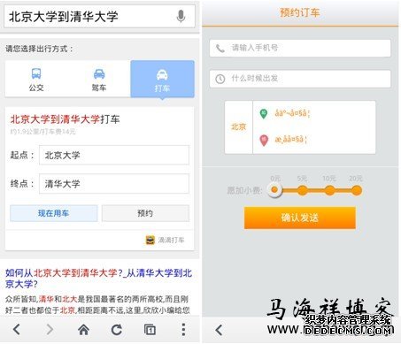 但在一些垂直领域,某些轻应用一家独大的局面恐怕不可避免。比如在百度中输入“北京大学到清华大学”会出现轻应用的打车预约,这种入口优势对其他打车应用而言则不是好消息。