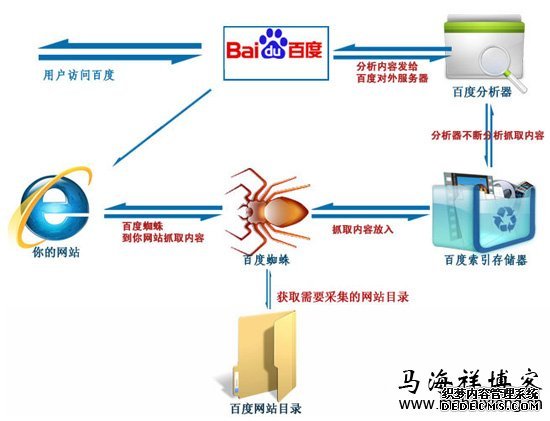 搜索引擎蜘蛛的基本原理及工作流程2015/8/10网站优化怎么做,搜索引擎用来爬行和访问页面的程序被称为蜘蛛(spider),也叫机器人(bot)。搜索引擎蜘蛛访问网站页面时类似于普通用户使用浏览器,蜘蛛程序发出页面访问请求后,服务器返回HTML代码,蜘蛛程序把收到的代码存入原始页面数据库,搜索引擎为了提高爬行和抓取的速度,都使用多个蜘蛛分布爬行。