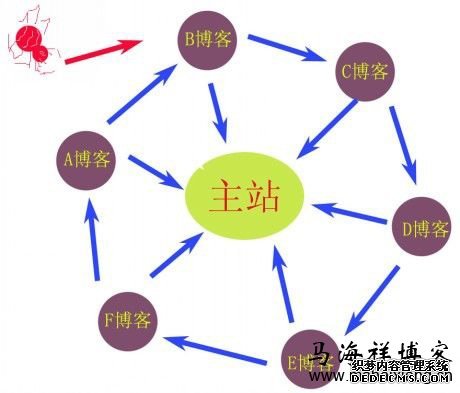 在此,马海祥要提醒大家一点:闭合的链轮易被搜索引擎发现,那么可以修改为第F个博客不链接到A博客即可。