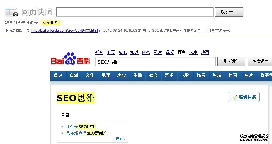 随后,360展开对攻,用户在360浏览器中使用360综合搜索时,点击来自百度相关服务的搜索结果,会被直接带至“网页快照”页面。