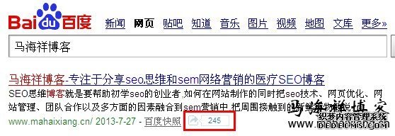 在访问行为上,还有很重要的一点就是百度分享,网站的自发分享次数也是百度关心的。对此我也在马海祥博客的新模板上特意加了这个模块,望各位博友也能多分享一下。