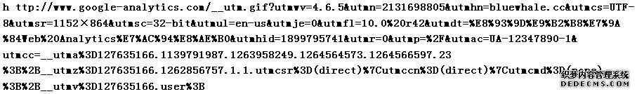 当访问者访问带有GoogleAnalyitcs追踪代码的页面时,GoogleAnalyitcs就会发回这样一条数据给Google服务器。此条数据中包含了GoogleAnalyitcs所追踪到的访问者信息。如下图: