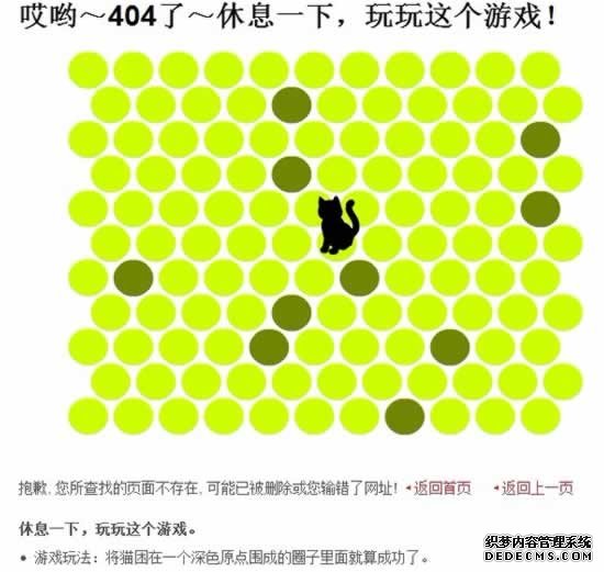 404错误并不可怕,可怕的是默认的“404NotFound”让用户摸不着头脑,这是怎么了?有些博客的404页面就是用的一段flash小游戏,增加一些娱乐性。