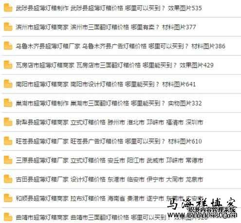灯箱行业相关产品名称大概有15个,全国省市区县有2050个,需求词大概有10个,组合起来超过30万个关键字。