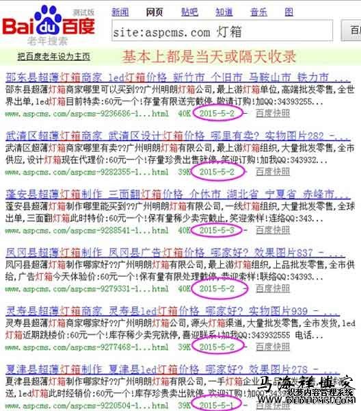 另外,普通版的百度搜索已经取消了百度快照的显示(具体可查看马海祥博客《百度正式取消百度快照更新时间显示》的相关介绍),百度老年搜索目前还没去掉快照日期标签,需要查看收录日期的话,大家可以访问查看。