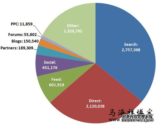 在此,我们不妨以马海祥博客为例,来分析一下网站流量的来源,如下图所示: