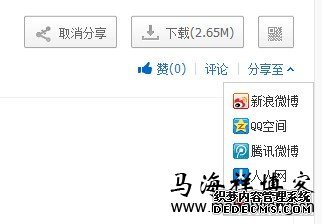 当通过外链及百度产品文件排名进入前20后,外链的效果就减弱。这个时候就要从社会化媒体这方面下手(对于目前还不明白社会化媒体重要性的朋友,可查看一下马海祥博客上的《SMO是什么?社会化媒体优化有什么作用》相关介绍),如下图可以看到百度网盘内部有赞的功能、分享的功能、评论的功能、下载的功能、保存的功能,我们可以叫朋友帮忙一起互动,谷歌网站推广同时加强推广,让参与排名分享文件获得更多的展现和点击。