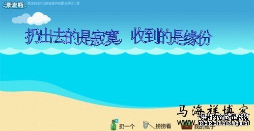 10、QQ漂流瓶是大海捞针式的,命中的结果谁也不知道。当然也有针对性的比如同城瓶。在宣传的时候我们要在放置漂流瓶中给自己写一个网站的签名(比如:马海祥博客:)。