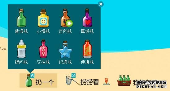 2、漂流瓶的推广方式可以细化。我们可以看到有很多种瓶子,这其实就是腾讯按条件给分开了,我们正好利用起来,比如你做女装就用交往瓶,保证收到的都是女生;只做本地的,就用同城瓶。如此会大大的提高我们推广的准确率。