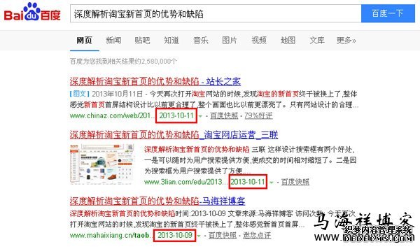 事实上,很多搜索引擎只是简单地将其首先索引、收录到的网页标注为原始出处,而将其他的网页标注为duplicatecontent,或降低排名或置于补充索引,外贸推广信而事实上,相应内容出现在Internet上的时间与其索引时间是两个概念,这之中存在很大的偏差,仍以马海祥博客为例,同样的一篇文章,在搜索结果页面排名中往往远落后于站长网或A5网的相应转载页面,如下图所示: