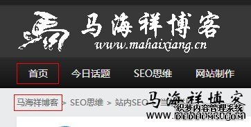 这是导航栏中非常重要的一个元素,也许你不知道该怎样去网站的其他地方,这时候点击“返回首页”就能够回到最开始的地方。当然也有很多的网站就直接使用“主页”或者网站名称(比如:马海祥博客)作为返回首页的按钮,如上图所示。其主要的作用就是不管你是否迷路,你都能随时从新开始。