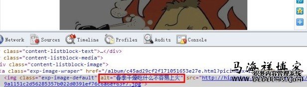 从上面的源码看,百度经验对经验里的图片采取了全部一样的ALT备注内容。“春季干燥吃什么容易上火”备注了全部图片。这也是在百度站长工具里对我们网站提示的:相关图片缺少文字说明。