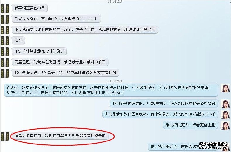 今年他软件快要到期了,又一次要续费了啦!软件涨价了,他不高兴所以对我们软件各种挑刺,但是最后也不得不承认“大部分客户来自软件”。