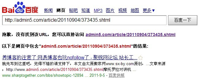 纯文本链接链接并非如很多人说的那样,没有什么用,其实作用也不小,我在之前写过一篇文章《养博客的注意了:网易博客也玩nofollow了》,这篇 文章大家的反应还不错,内容上是我实验过程,图文并茂,这样的文章是肯定收录了的,但是我们查下这个链接,却是没有被收录了,而一些复制的内容却收录了 (如图)是什么原因呢?我们对比下我文章前后的文章可以发现问题所在。