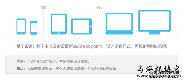 根据内容的可读性、易读性作为确定断点(breakpoint)的标准,即在对内容进行布局设计的时候,可以无视设备,有内容决定何时需要采用不同的呈现方式。