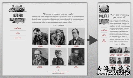现在,我们的页面已经可以随着设备和屏幕规格的变更,响应式的做到元素的同比缩放、布局结构的改变、内容的优化调整。特别是对于手机设备,我们还要在实践过程中注意一些该类设备共有的设计指导原则。比如,针对手机设备,使用一个特定的样式,将页面原有的文字导航元素变为更易操作的图标形式,网页设计全方位解析响应式网页的设计与应用对此大家也不妨按照马海祥博客的《如何制作一个响应式网页》所介绍的方法来制作一个响应式网页试试。