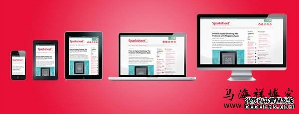 当页面所需要适应的不同设备的屏幕尺寸差异过大时,除了图片方面,我们也应该考虑到整个布局结构的智能化调整(具体可查看马海祥博客的《响应式网页布局的实现方法原理》相关介绍)。我们可以使用独立的样式表,或者更有效的,使用CSSmediaquery。这不会引起多大的麻烦,多数样式设定不会被影响和改变,只有一些特定的元素会通过浮动、宽度和高度等的设置来改变位置。