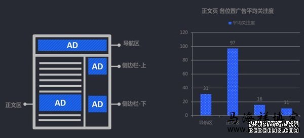 ②、另外,鉴于矩形广告本身尺寸的特殊性,在文章结尾处,广告又可放置于左侧与右侧,那么哪一侧广告的关注度更高呢?