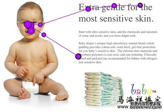 一般来说,当访客打开一个网站时,会本能地关注网站上人物图片中的脸和眼睛,关于这点倒是为我们提供了一个想法,是不是可以用人物配图吸引访客的注意力呢?根据眼球追踪的研究,我们先会关注这个直望着我们的小萌孩,当然,这仅是第一步: