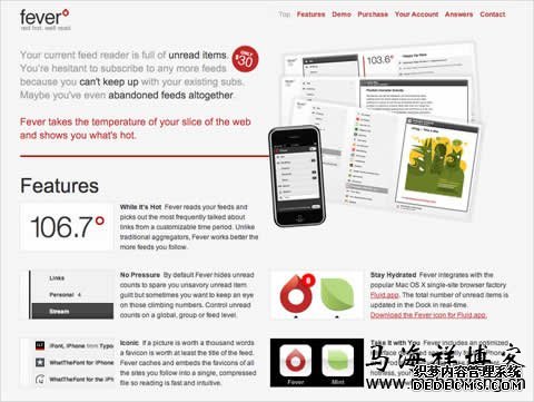 这是一个展示手机应用的网站,可能我们不知道这个名为”fever”的APP究竟怎么样,可是看到一个这么干净圆润的用户界面,对它的好感理应大大提升了。